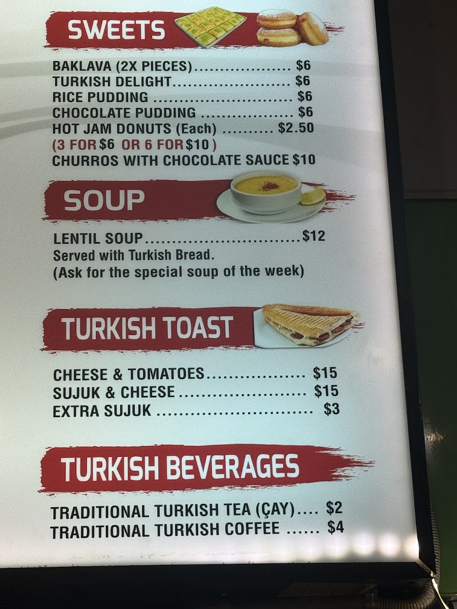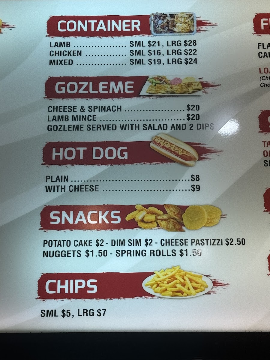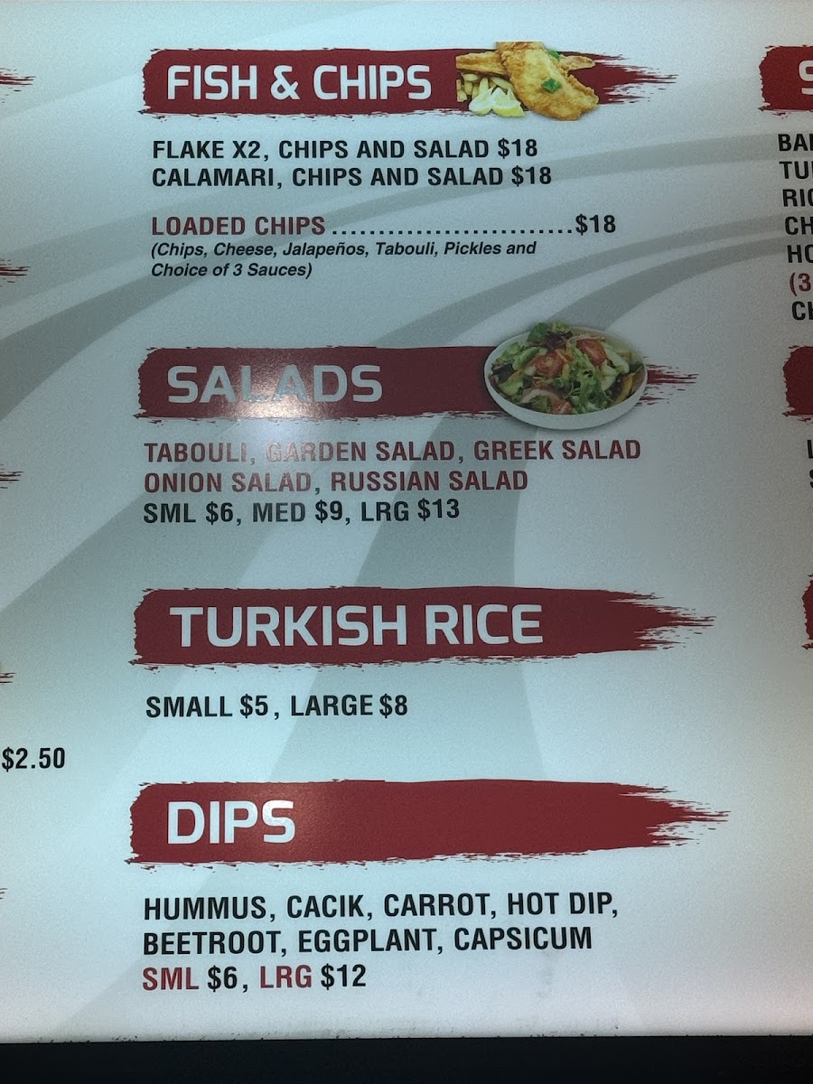 Flaming Kebabs & Grill in Yarraville offers a diverse menu that is sure to satisfy a wide range of tastes. Their HSP options are particularly popular, including the classic HSP and variations like Rice HSP and Falafel HSP, each packed with flavors. For kebab lovers, the selection includes the Mixed Kebab, Lamb Shish Kebab, and Chicken Kebab, as well as the flavorful Kofte Kebab and Chicken Shish Kebab. Their Grilled Meals include standout choices such as Mix Shish, Lamb Shish, and Chicken Shish Kofte. For those seeking lighter options, they offer a range of Turkish Rice sizes, from Small Rice to Large Rice. If you're in the mood for something quick, the Hot Dog provides a casual, comforting bite. In terms of sides, crispy Chips and a selection of Breads, like Turkish Bread and Full Turkish Bread (toasted and buttered), are available to complement any dish. The Dips, including Humus, Cacik, and Eggplant, are perfect for adding a little extra flavor. Their Gozleme options, such as Lamb Mince Gozleme and Cheese and Spinach Gozleme, provide a delightful and savory experience. For a refreshing drink, choose from Ayran, V Energy Drink, or a simple Canned Drink. When it comes to dessert, Baklava, Turkish Delight, and Rice Pudding with cinnamon topping are available to end the meal on a sweet note. The restaurant also offers Deals like the Lunch Pack and Veggie Meal Deal, ensuring there's something for everyone. Whether you're after a hearty meal or a light snack, Flaming Kebabs & Grill delivers delicious options for every craving.
