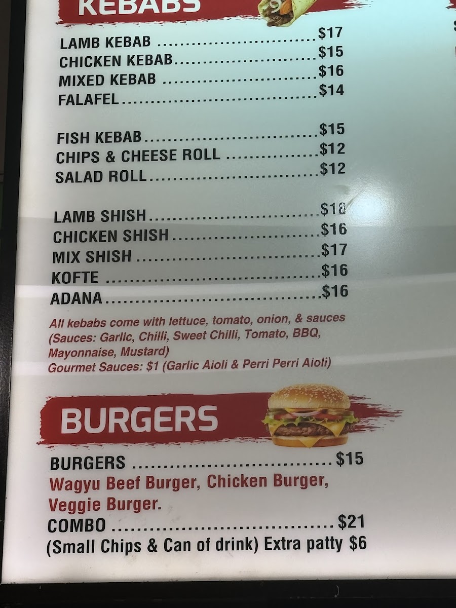 100% Real Lamb... Kebab comes with lettuce, tomato, onion and sauces.